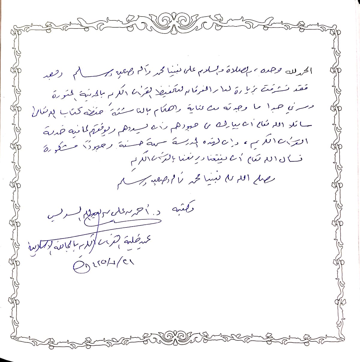 الحمد لله وحده وبعد فقد زرت وقف دار الفرقان لتحفيظ القرآن وأسعدني ماتقوم بع من أعمال خيره وجهودها مباركة في خدمة كتاب الله العظيم